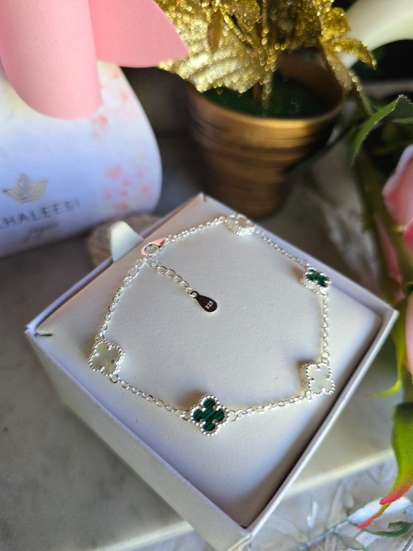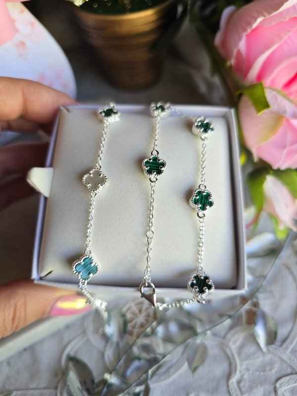 Plata 925 con Trébol verde y Nácar